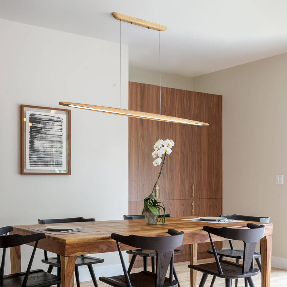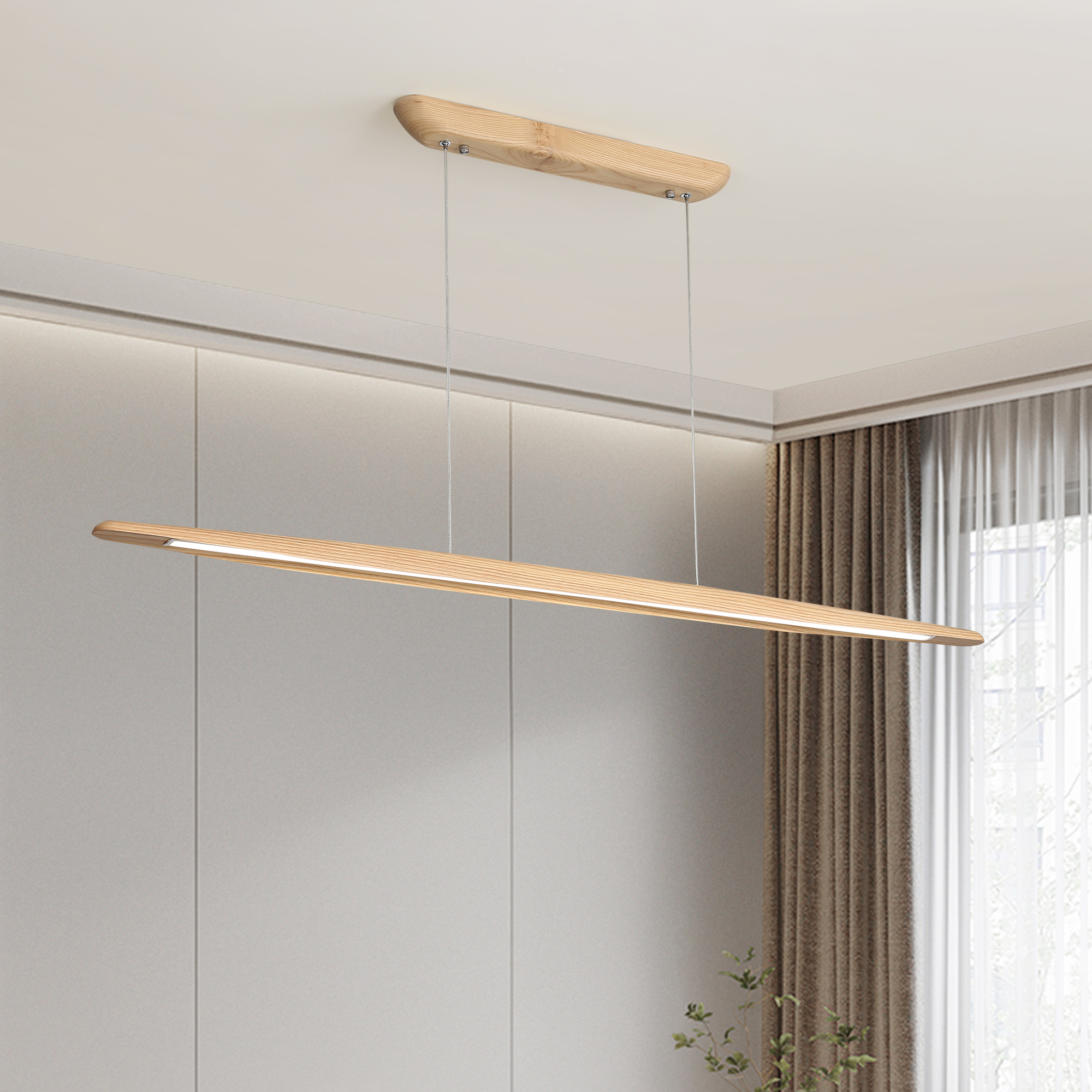 Lamp Size: L1300*W60*H45/1800mm L1500*W60*H45/1800mm ,Wood canopy size:520*55*35mm,Light source:LED,suspension wire:1.8m,Double fishing net line without steel wire,3000K/4000K/5700K