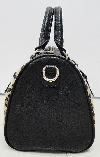 • Fake horse hair with leopard pattern with black PU trim