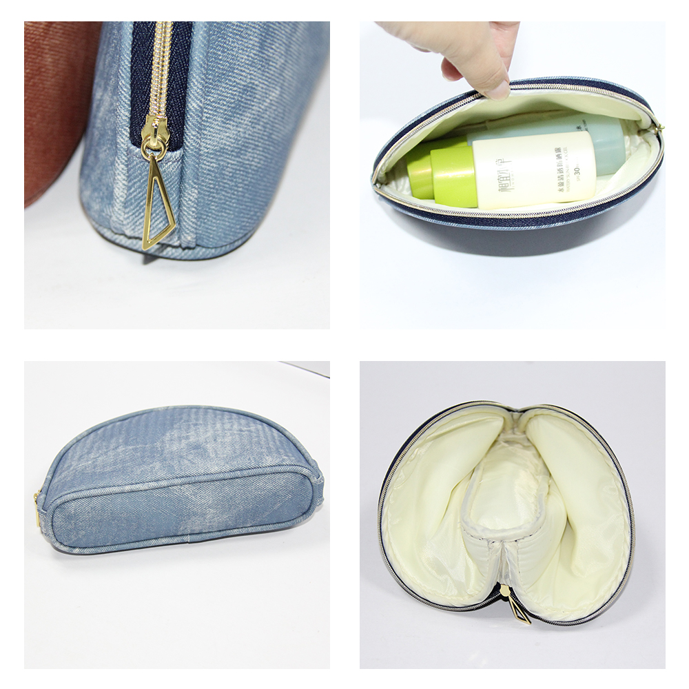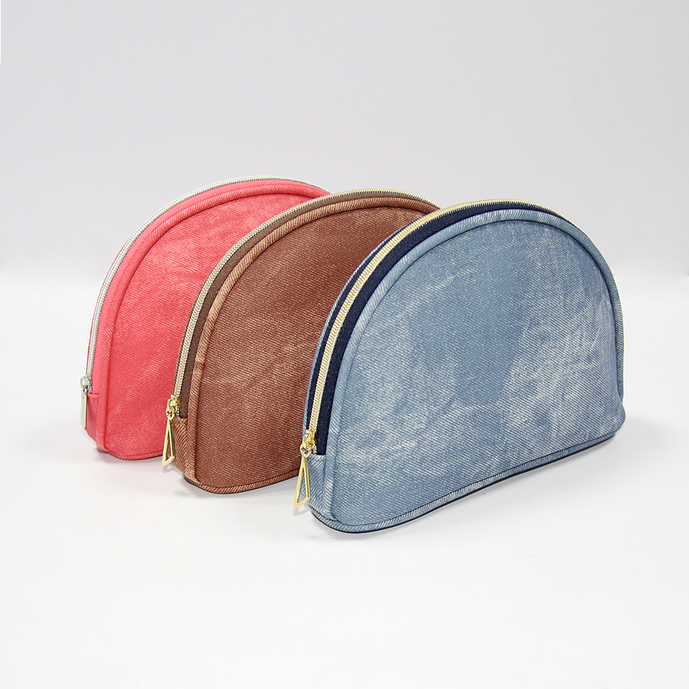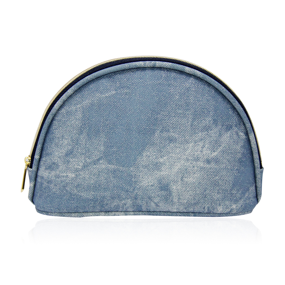 • New Style STONE WASHED JEANS LOOKING PU Cosmetic Bag with elegant gold zipper create casual luxury