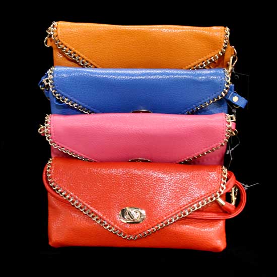 This stylish evening bag comes in 4 assorted colors. The twisted clasp closure allows easy opening and secure closing. It also comes with a shoulder strap for comfortable carrying.