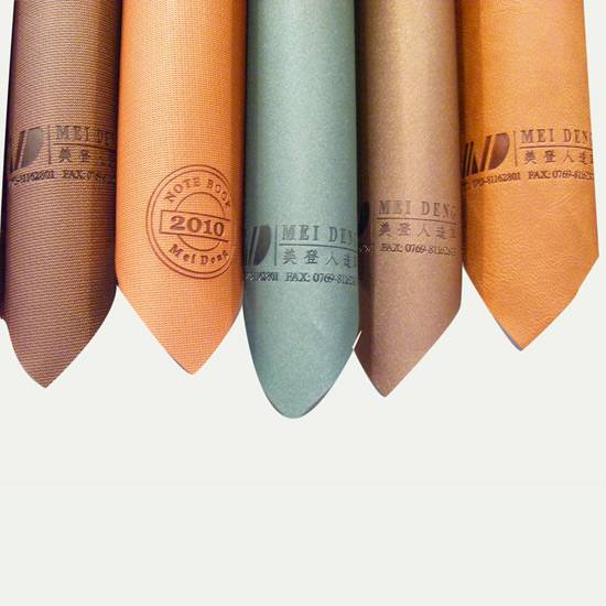 These are samples of PU faux leather material. The synthetic leather features a color changing capability under heat pressing. The heat stamping color change effect is shown clearly in the photo.