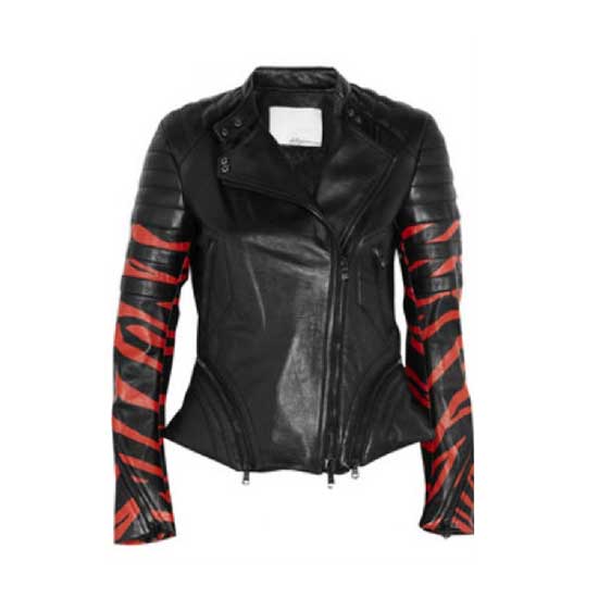 This PU jacket in black employs zippers as the main element for a cool touch. The eye-catching red patterns on the sleeves vitalize the look instantly. This chic PU jacket is a great addition to your wardrobe.