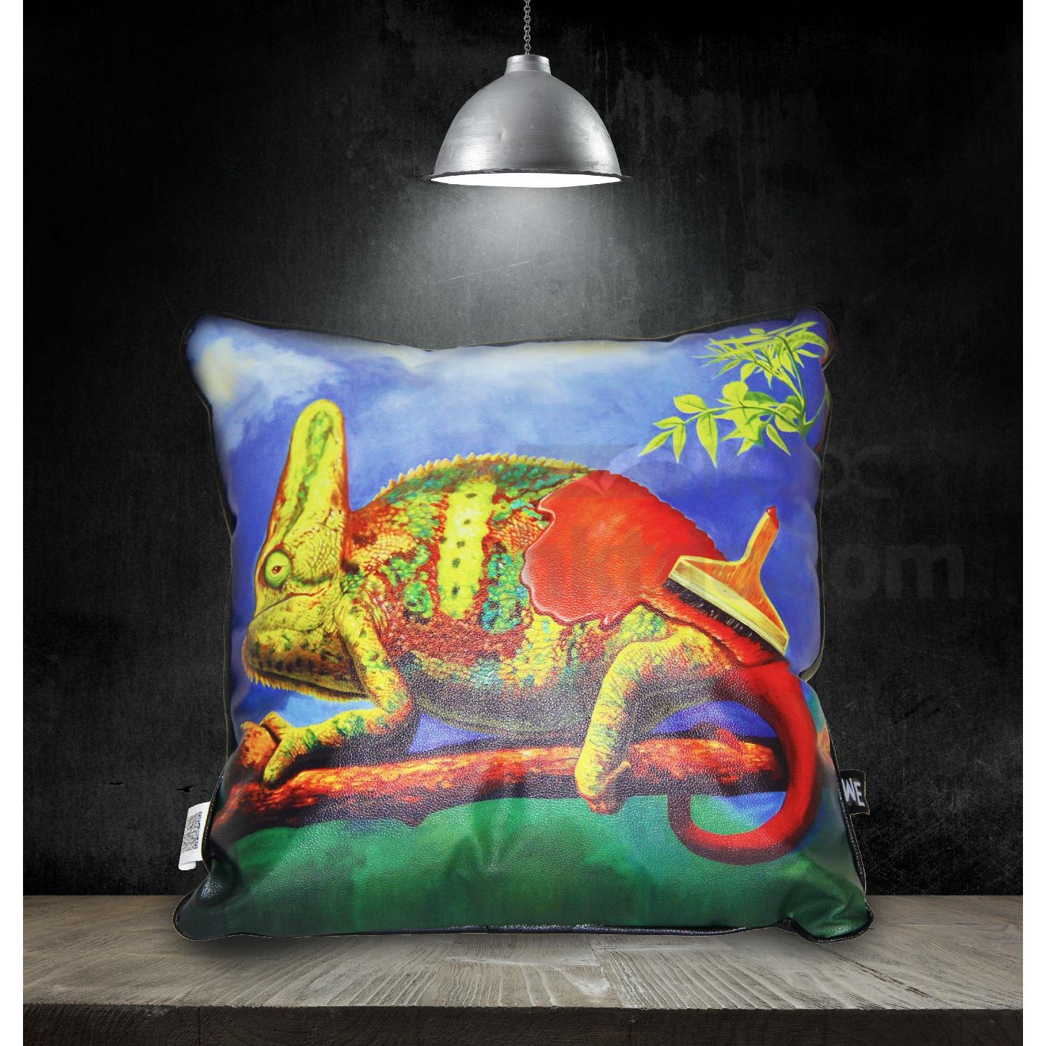 Decorate your home with a tropical accent with this lively chameleon cushion. It is characterized by a real-looking 3D illusion in remarkably vibrant design, which flaunts an energetic touch. Offering comfy snuggling experience with the fully padded design, this cushion will be a charming and functional extension to your chair or sofa.