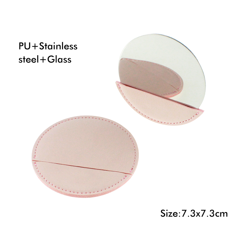 PU Leather Small Round Mirror Ladies Single Side Portable Pocket Makeup Mirror