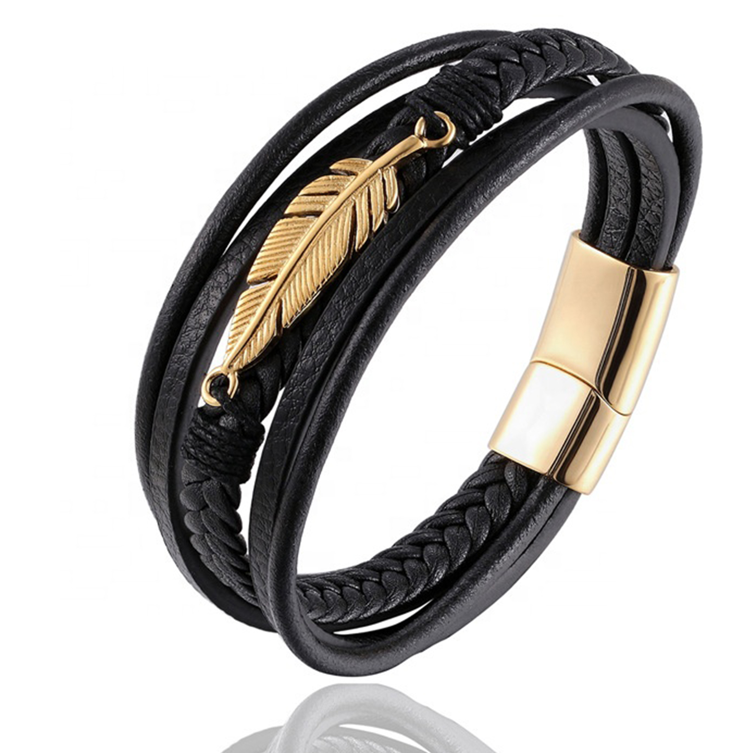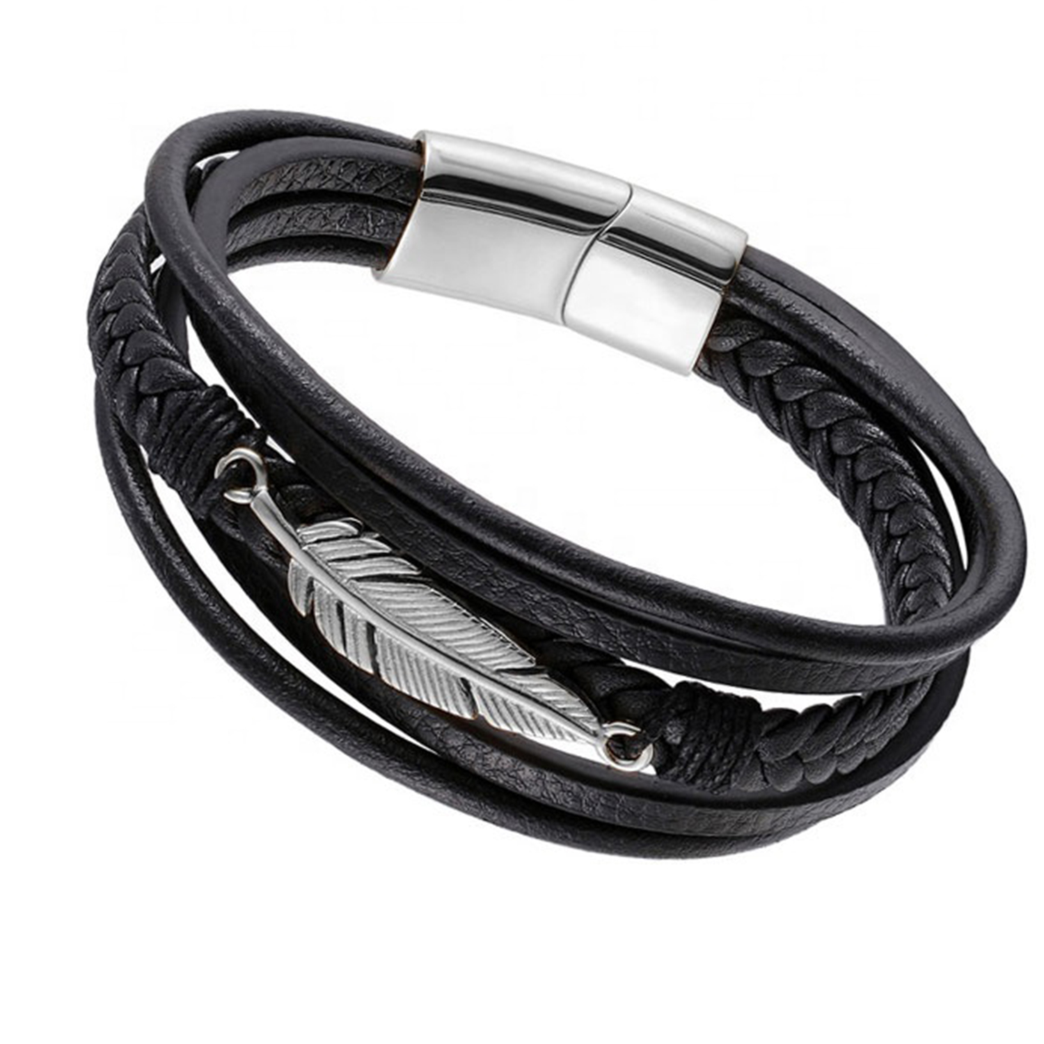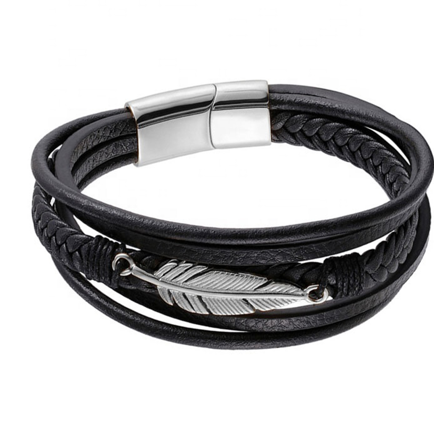 private logo Personalized Gift Wide Men Braided Genuine Multi layerReal Leather Bracelet