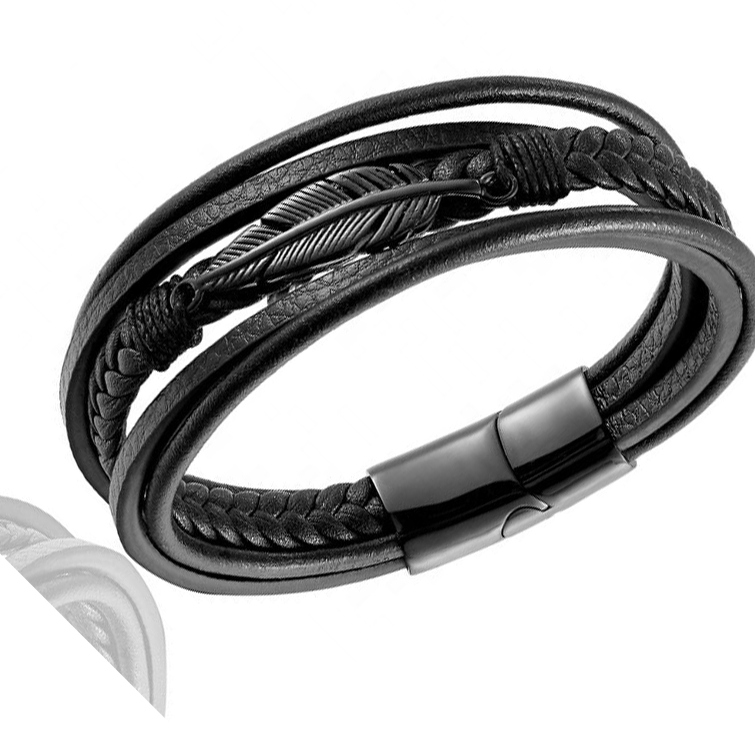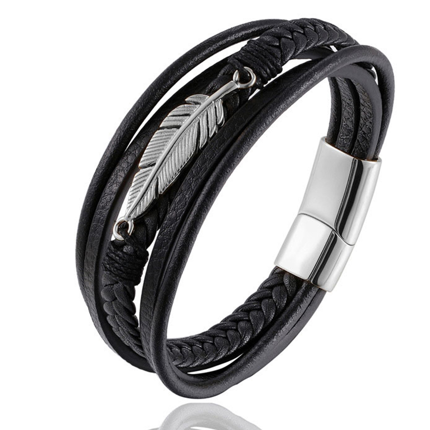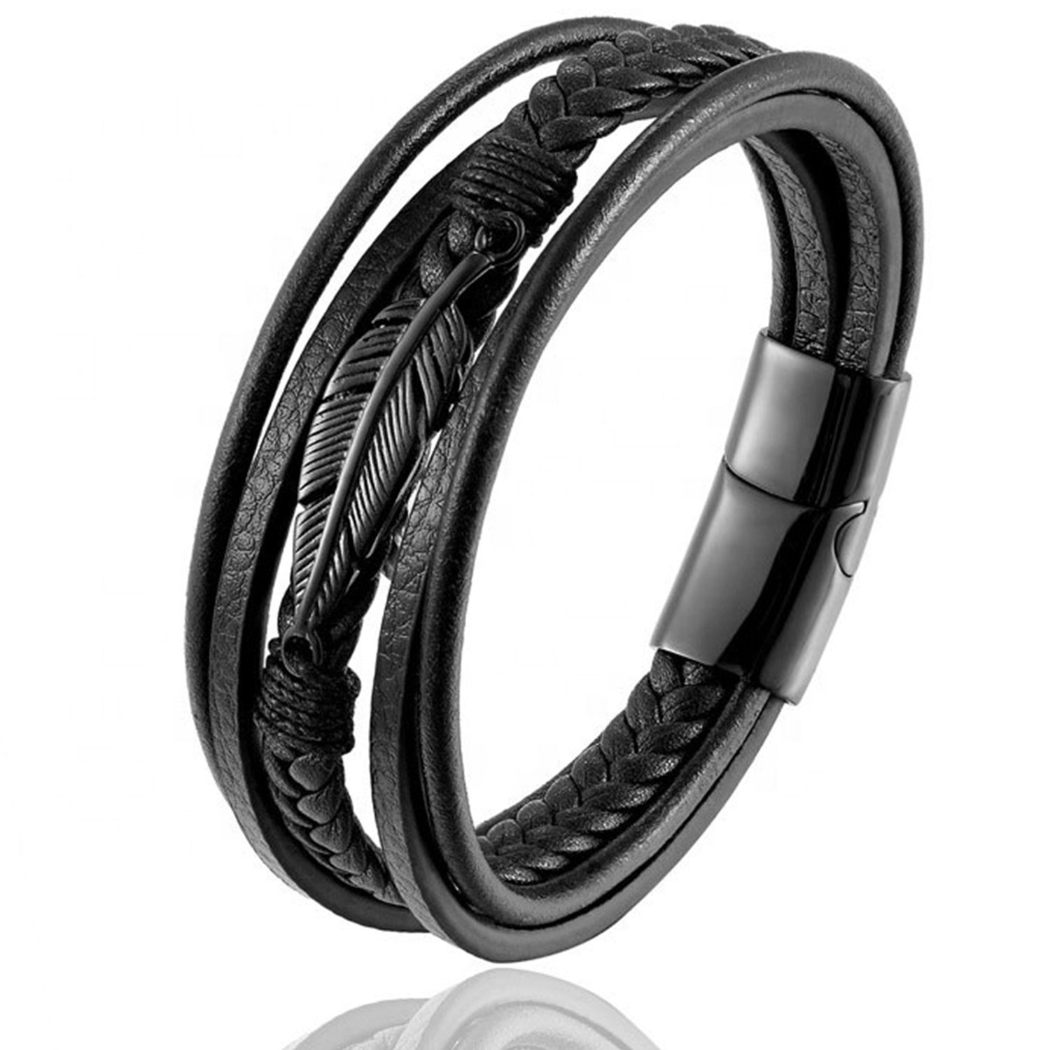 private logo Personalized Gift Wide Men Braided Genuine Multi layerReal Leather Bracelet