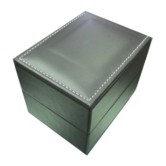 Featured is a rectangular watch box finished with a soft PU exterior highlighted by accent stitching. It is fitted with a watch cuff or pillow insert to fix the watch in place. This elegant PU watch box is ideal for gift packaging and storage use.