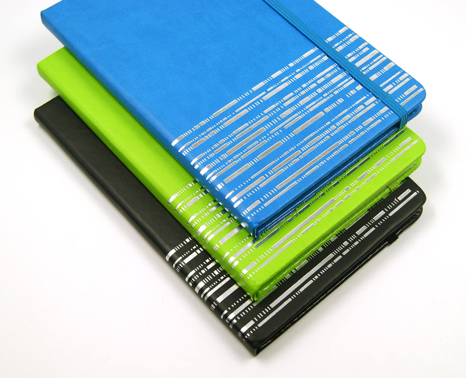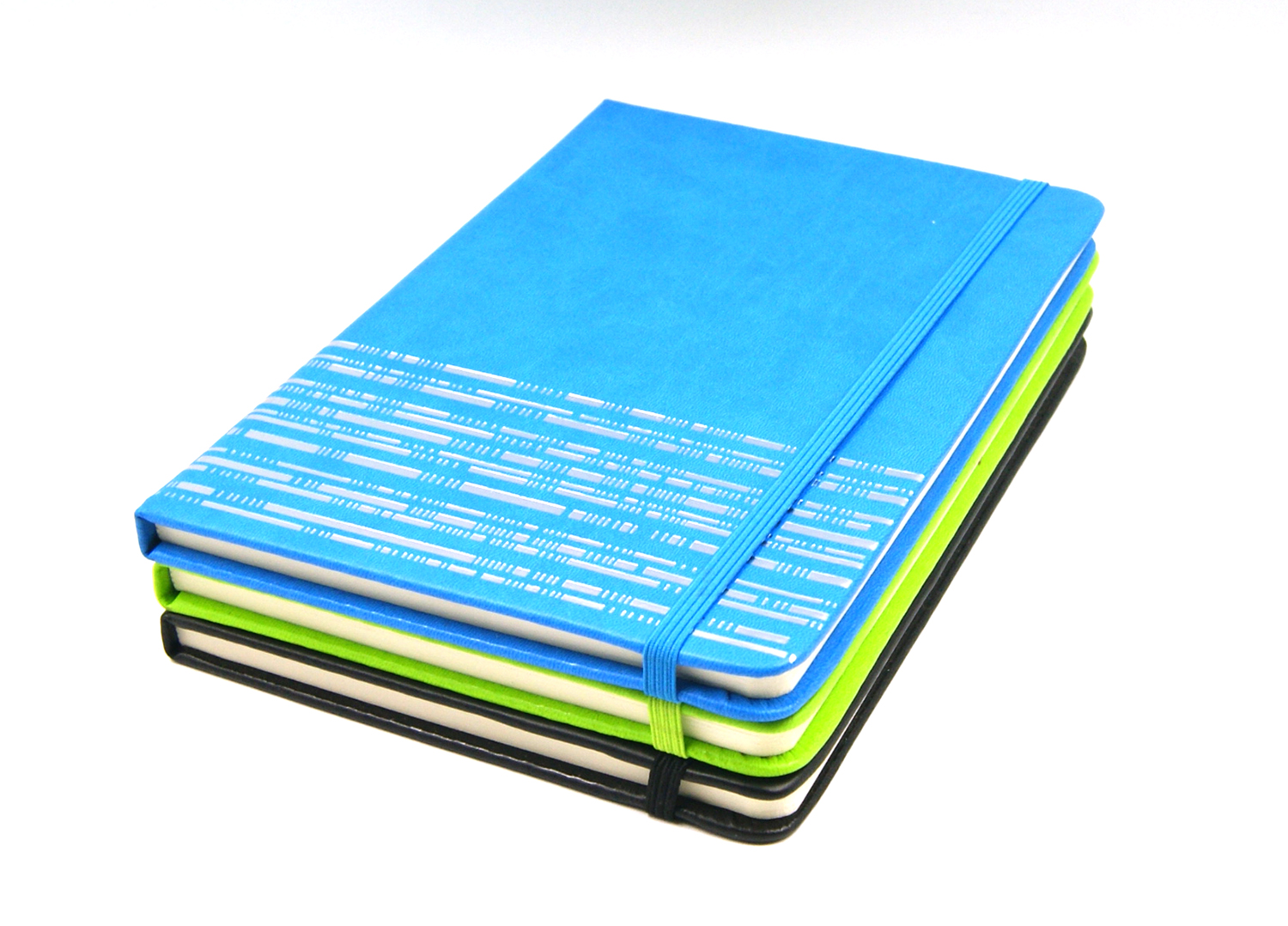 PU cover notebook with elastic band, Alos with silver pattern printing on cover, it looks quite good as a gift.