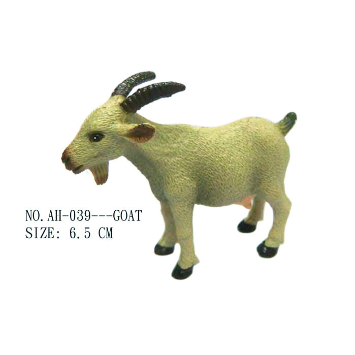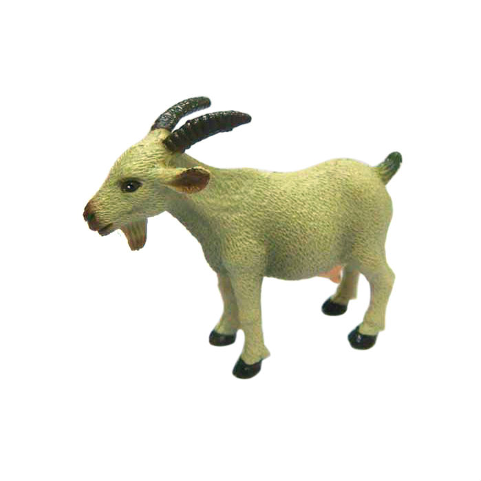 This goat figure is made of PVC material and has a realistic design. It is well-crafted for a detailed look and can match well with different animal figures. The PVC goat is great for children to collect and is available in assorted colors.