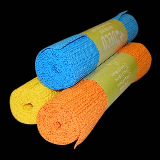 These are three PVC floor mats which are anti-slipping and waterproof. Rectangle in shape, they are blue, orange and yellow in colour, and can be used as bathroom mats, kitchen mats or door mats.