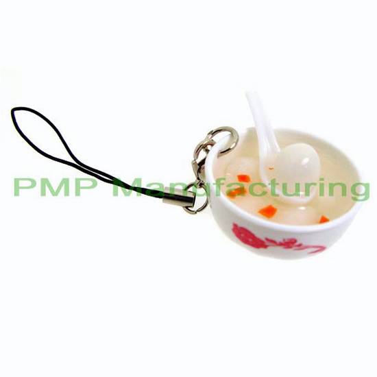 The plastic mobile phone charm features a PVC decoration with the design of a bowl of dessert with a spoon. It comes with a trigger clasp for you to hang different charms as you want. This delicate mobile phone charm is a great accessory for your mobile phone.