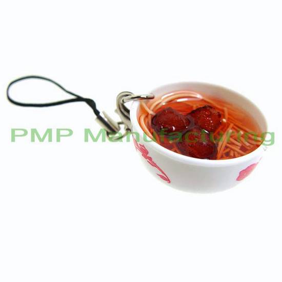 The plastic mobile phone charm features a PVC decoration with the design of a bowl of noodles. It comes with a trigger clasp for you to hang different charms as you want. Accessorize your mobile phone with this adorable mobile phone charm.