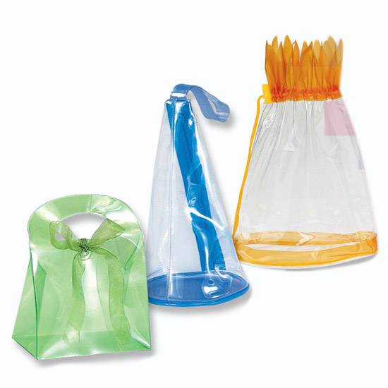 This PVC packaging bag comes in novel and eye-catching shapes. The plastic handle on the bag is specially designed for matching the bag style. This PVC gift bag is suitable for packing gift items with different shapes, such as wines, cakes and so on.