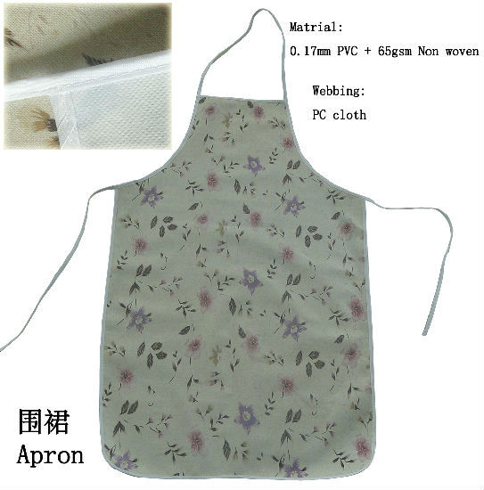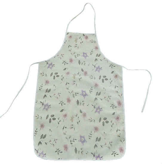 Create meals while keeping your clothes clean by wearing this printed apron. It is covered with allover floral patterns for an appealing appearance. This printed apron is made of quality PVC materials with a non-woven backing for a durable construction.