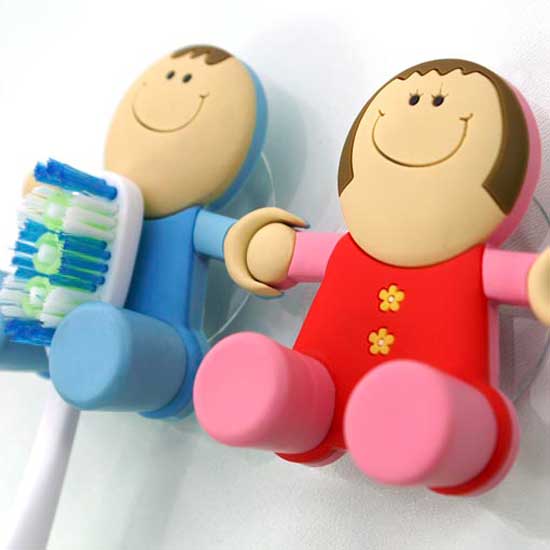 The PVC toothbrush holder boosts a funny design of cartoon characters that appeal to small children. The back is attached to a suction cup that can be mounted on walls conveniently. This toothbrush holder keeps your razor blades and toothbrushes neatly in bathrooms.