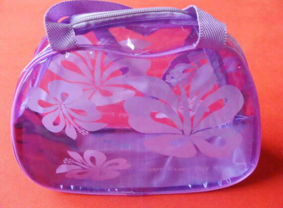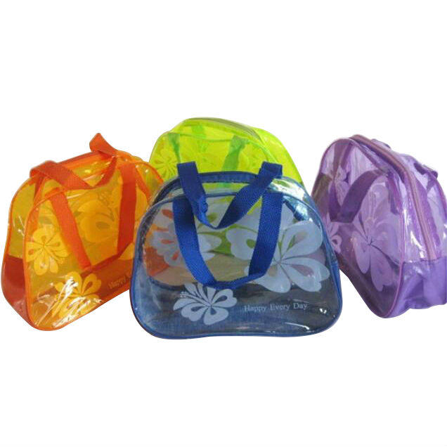 PVC travel bag is made of PVC material and handle with silk printing logo