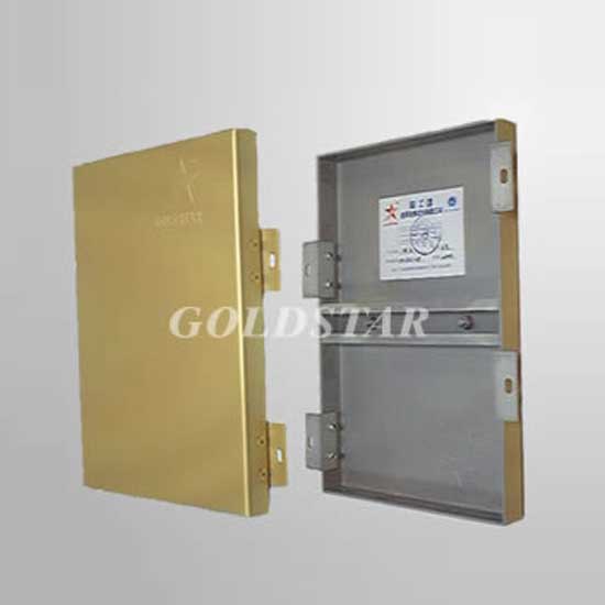 This curtain wall veneer features a golden toned PVDF coating for being unaffected by most chemicals and solvents. It is widely used for building decoration. Made of aluminum, this curtain wall veneer boasts sturdiness and durability.