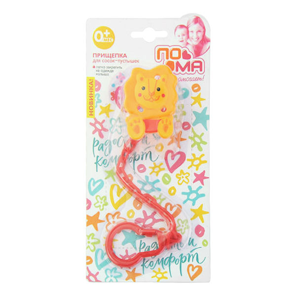 Keep pacifiers clean and close with this PC pacifier clip. It has a buckled chain and can be easily attached to garments, strollers, car seats and more. This pacifier clip is adorned with a cute lion and can prevent dropping or losing the pacifier.