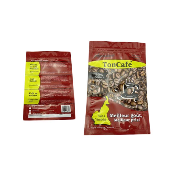 This is a food packaging bag that comes with allover wording in bright colors. It is certified to meet various safety standards. This food packaging bag features a high-gloss surface.