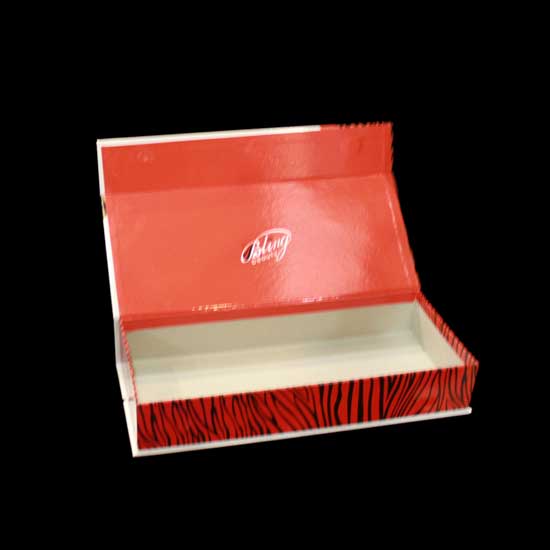 Displayed is a packaging box for storing flat iron. Made of high quality material, this box stays in shape well, protecting the equipment inside. This flat iron box is a good accessory for your hair beauty product.