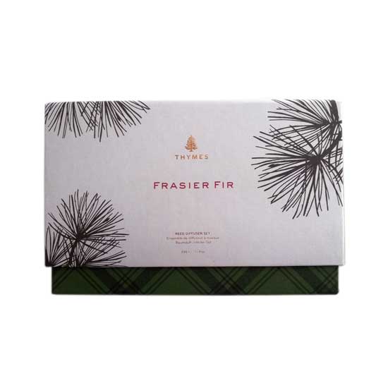 Displayed is a packaging box for Thymes. Featuring woodfree grey board with gold hot stamping, this packaging box looks elegant and of high end. This packaging box is made of high quality materials for durability.