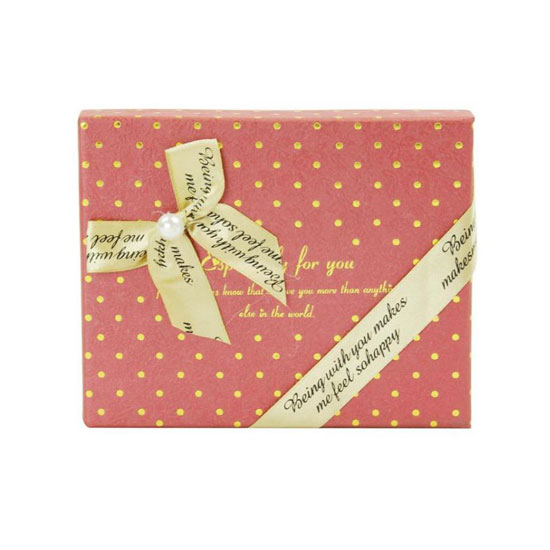 This coral-colored packaging box is styled with a girly dotted pattern. It features a yellow ribbon for an elegant touch. It makes your gift even sweeter and more gorgeous.