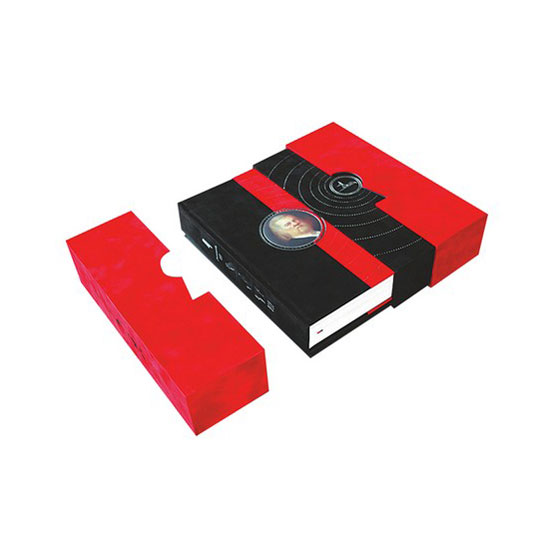 This is a packaging box that is finely crafted with refined details. It comes with a two-toned look in black and red. This packaging box offers an extra-long service life.