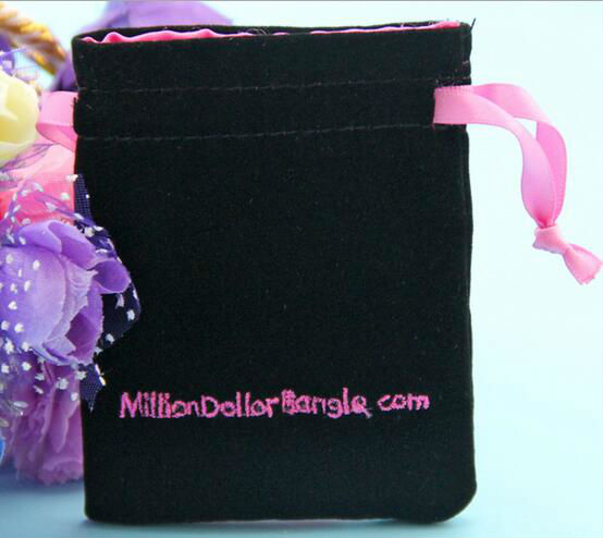 1.Material: 1C velvet material+ silk printing logo+drawstring