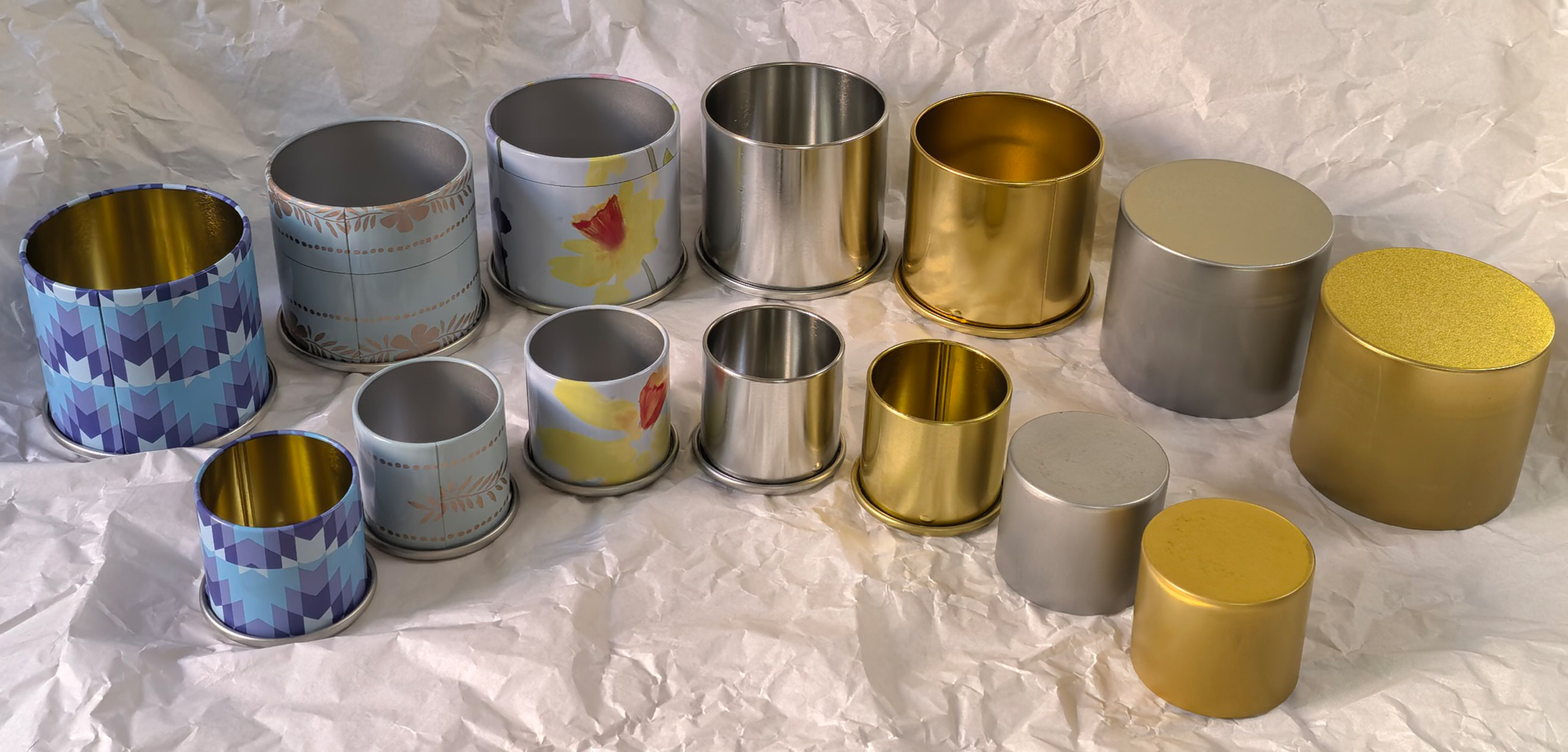 Tinplate container packaging ideal for gift and candles, available in 62mm or 94mm in diameter.