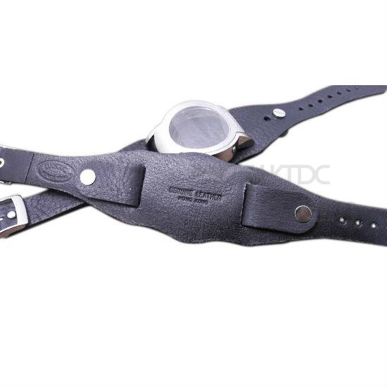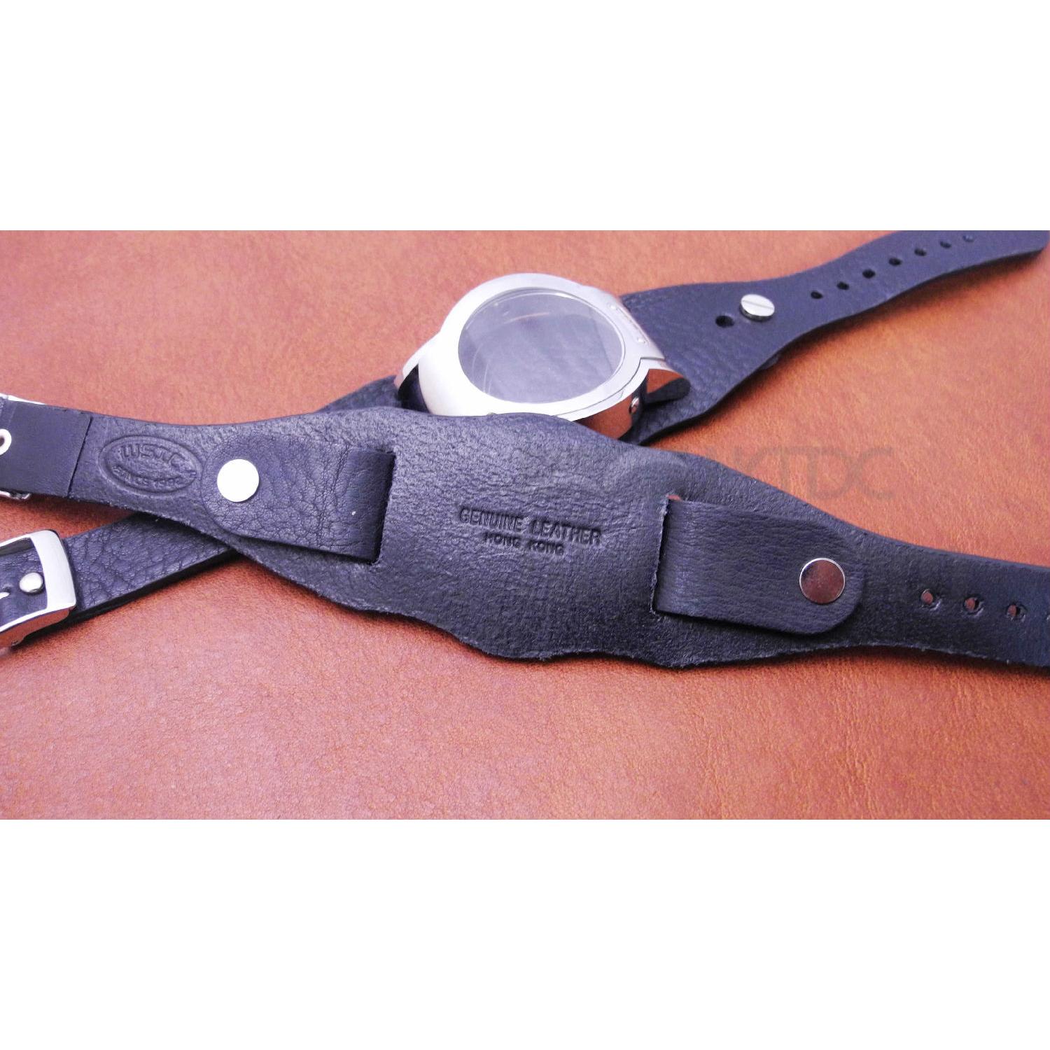 A military style watchstrap made of genuine cow leather, two adjustable leather rings can move up & down to fit different watch cases.