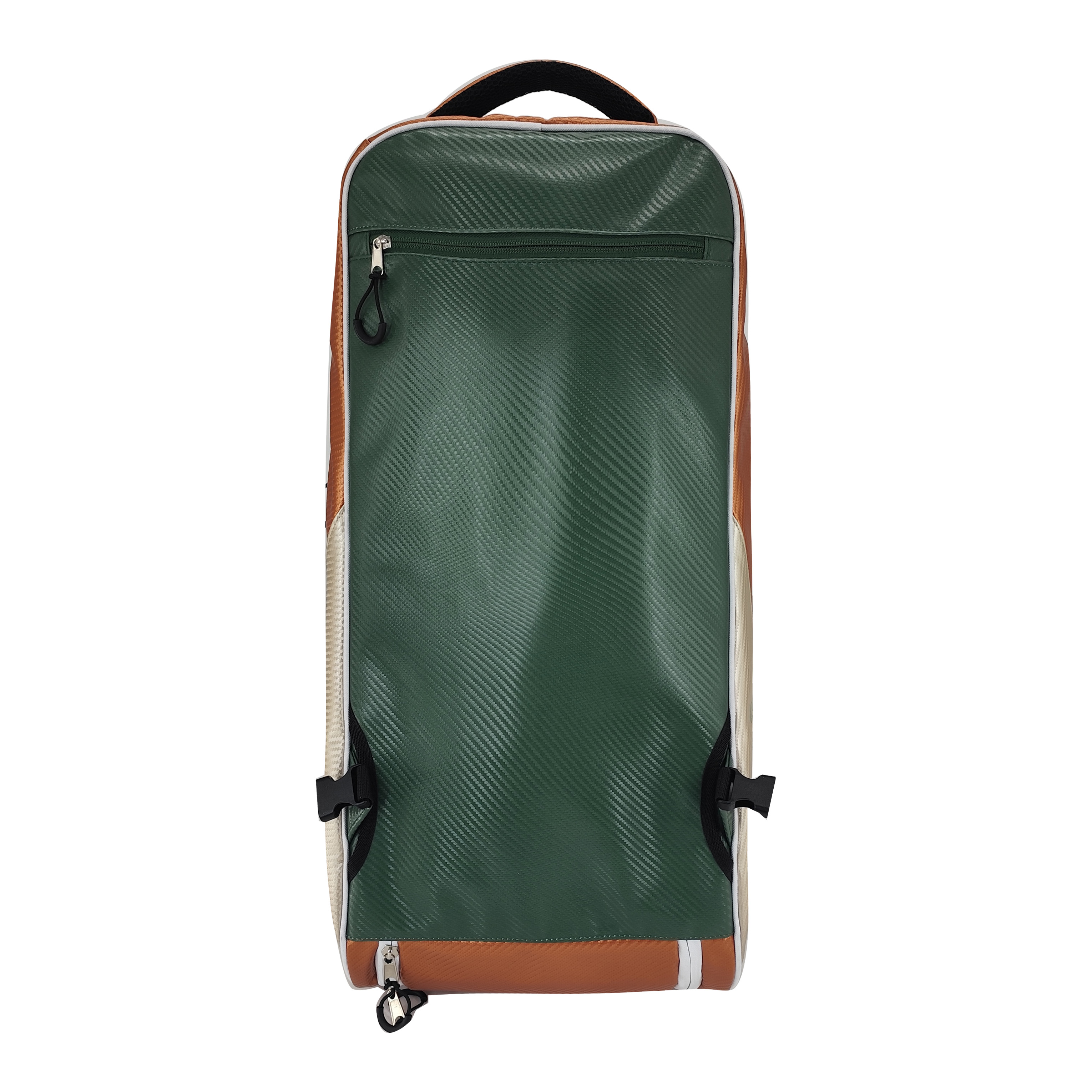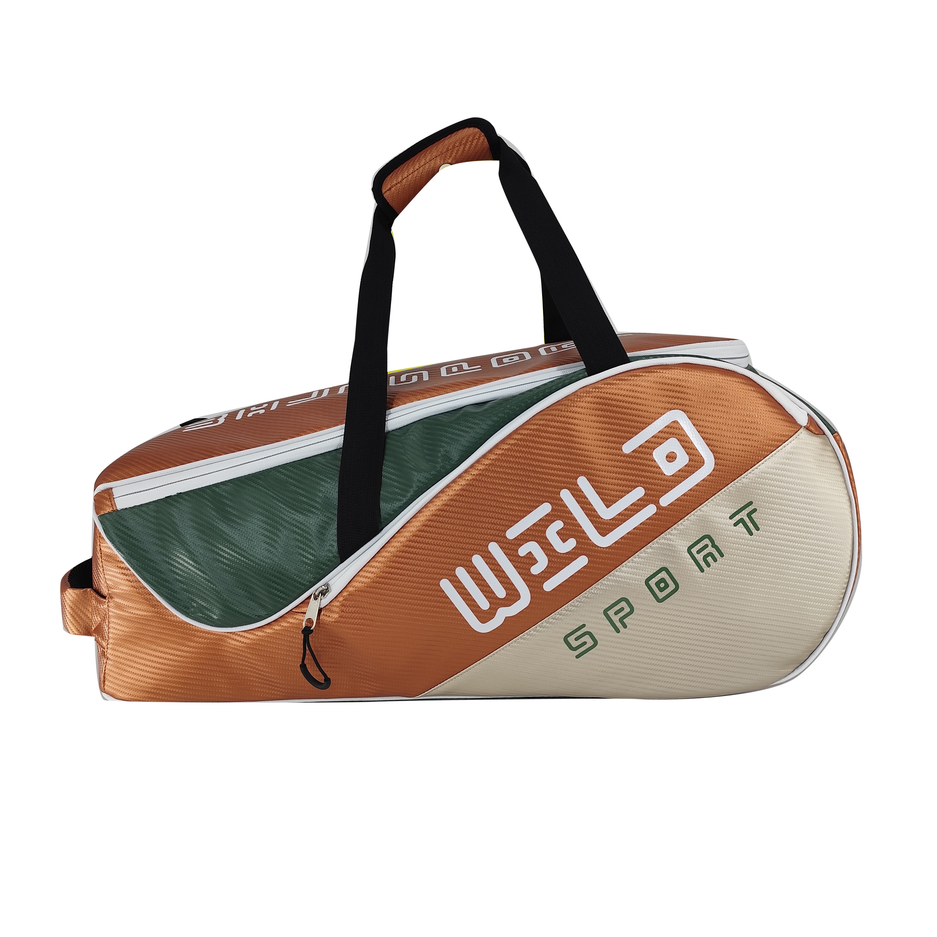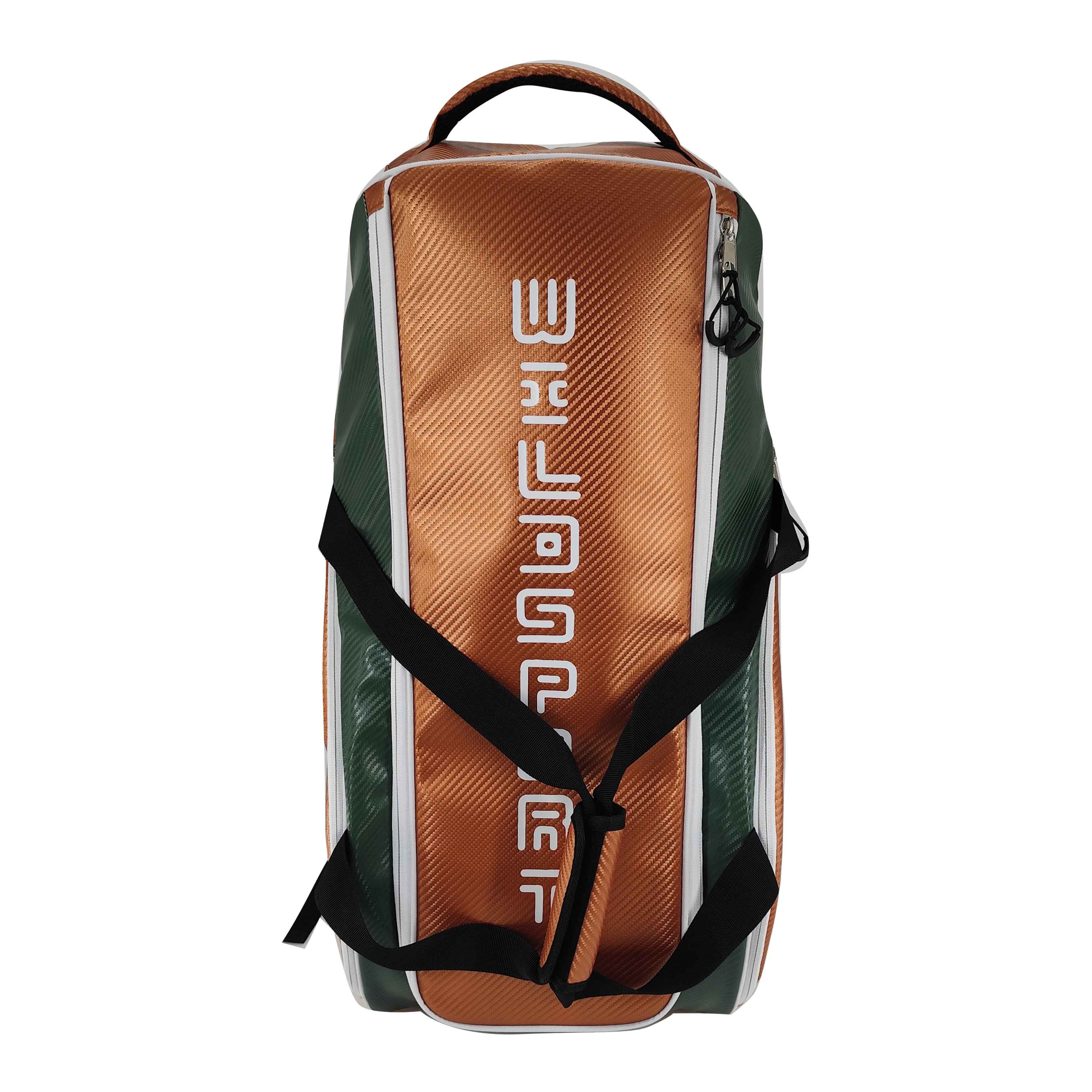The Bag made by PU material and design for two paddle tennis racket. The bag have one shoes compartment and a large compartment for clothes.