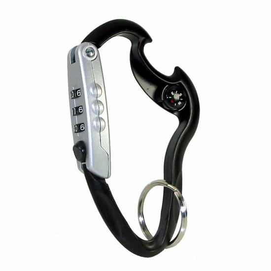 This is a padlock which is equipped with 3 digit automatic lock, a compass, a metal ring and bottle opener functions.