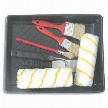2-piece 18cm insert type roller cover superlon, 3 gold stripe woven fiber, nap length 12mm, 2-piece 650# red plastic handle brush, size 40mm, 60mm, 60% tops quality, length out 44mm, 45mm, tin ferrule