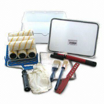 7pcs paint roller pack: 1pc 18cm roller frame insert type rod, zinc plated diameter 7.8mm, black color plastic handle.