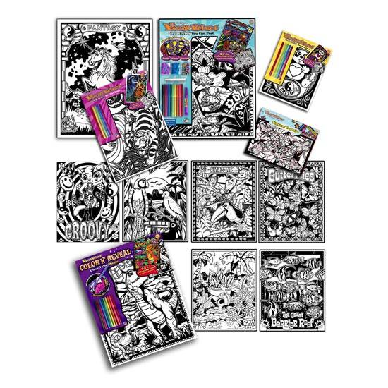 These are colouring books for kids to enjoy colouring, they can free their imagination to finish the drawings by adding colour according to their own wills. There are simple and complicated drawings for them to practise.Different themes include animals, forest, comics, etc.