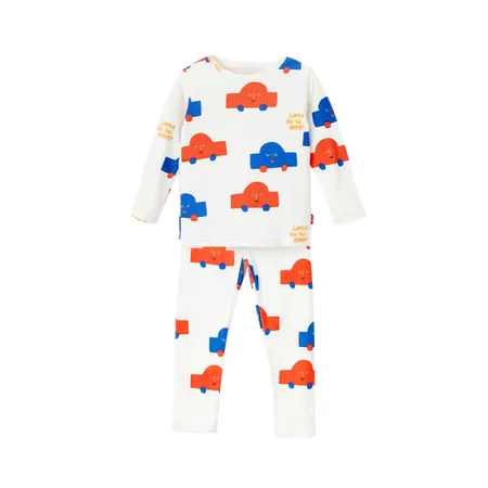 Introduce your child to the fun and comfort of the Thinking Bung Bung Bunga Pajama Set, featuring an adorable car-themed print. This set is designed for kids aged 3 to 8 years and offers both functionality and style.