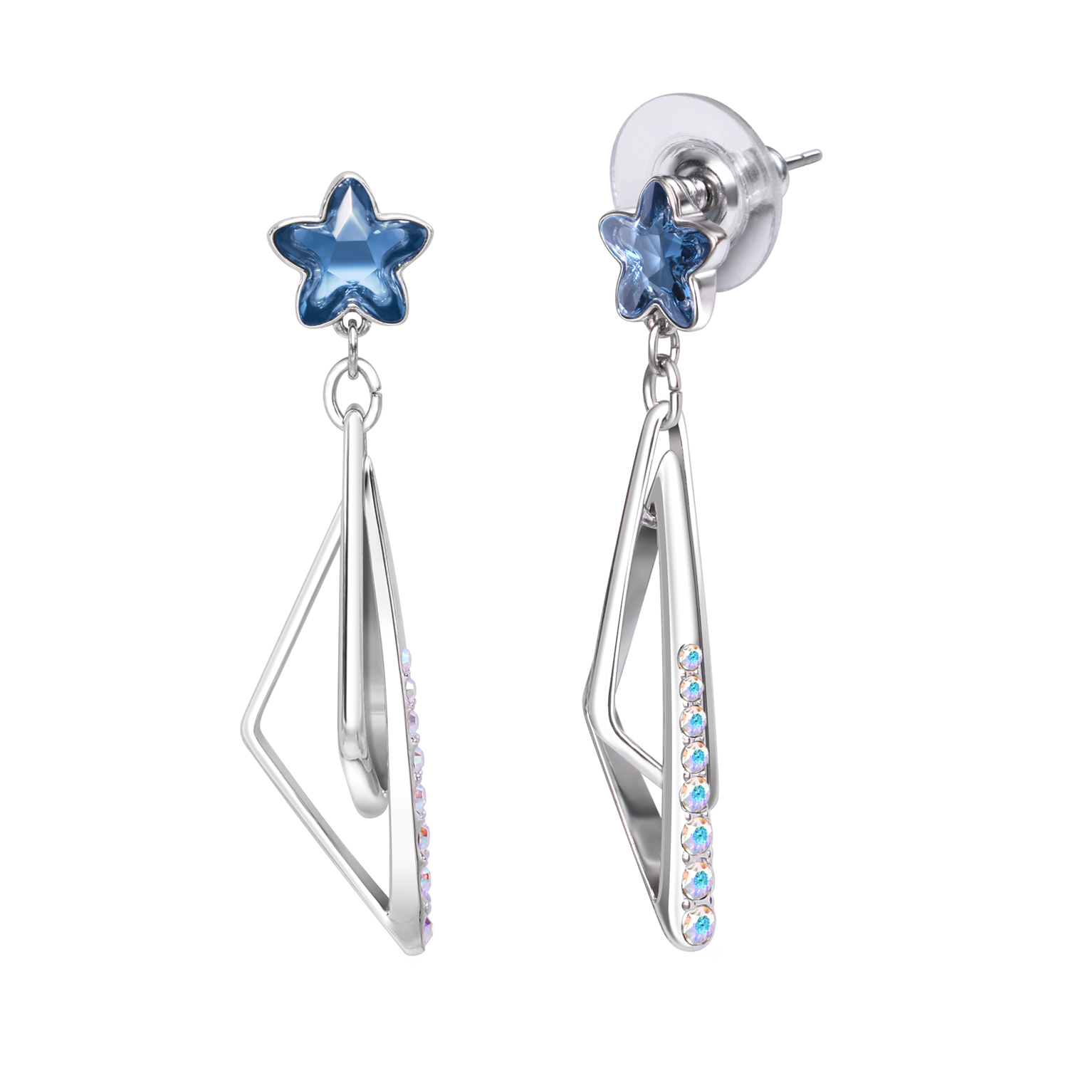 If you want to look polished and a little flirty for a date night with your lover, these dangle earrings are the accessories you need. Pierced with a mesmerizing blue star, this pair drops to two interlocking triangles for a refined and cute look. To infuse the piece with a subtle shimmer, a row of sparkling stones is embellished on one of the triangle’s sides. Delicate but not too intimidating, this pair is suitable for a casual movie date or a fancy dinner.