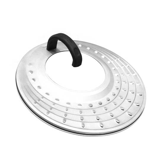 This exceptional pan cover is made of carbon steel for durability. It comes with circles of vents for safety and fast cooking. The round transparent design in the center offers an easy way to keep an eye on the contents.