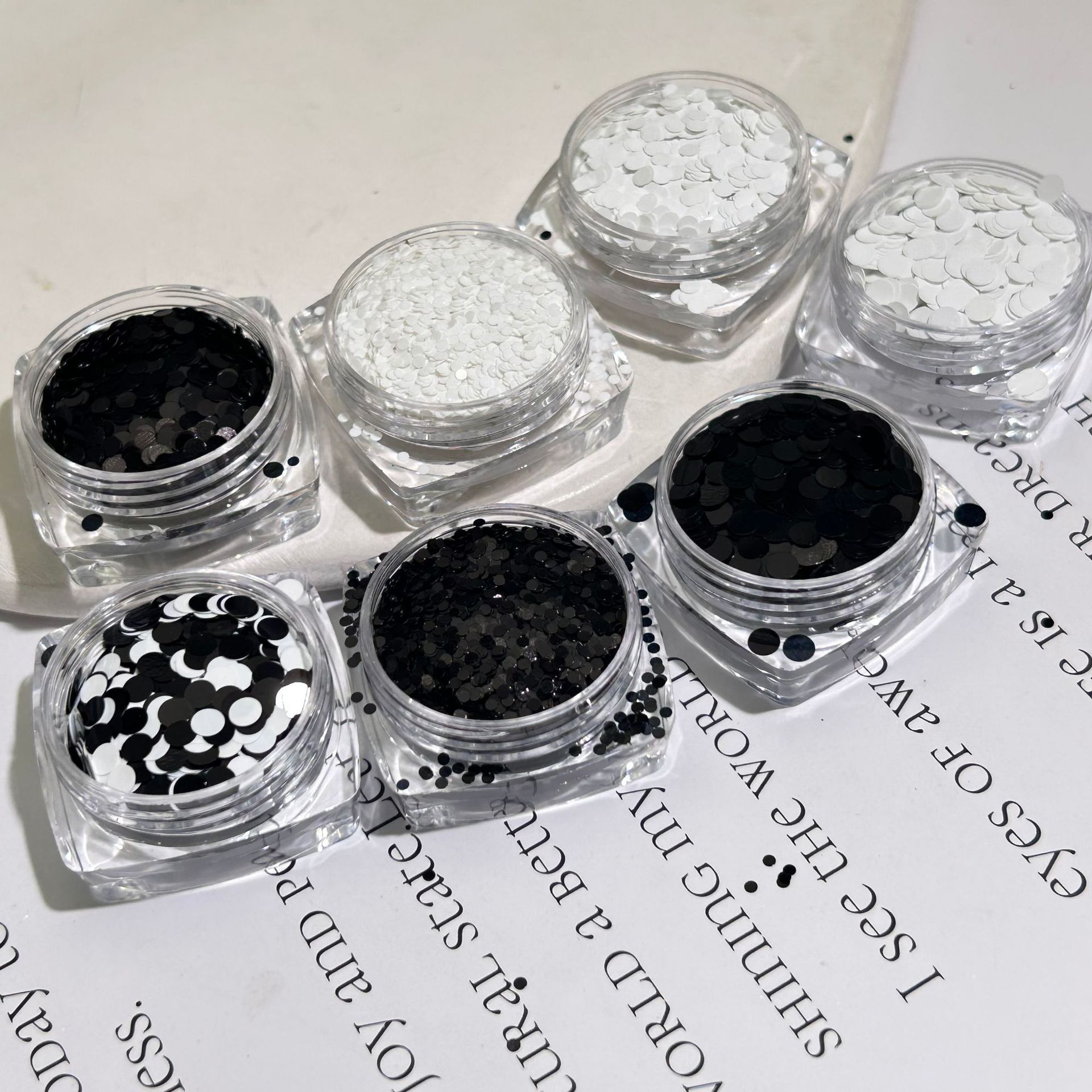 Panda color series of large and small round shapes, mixed black and white nail decoration sequins, DIY handcraft toy materials and accessories.
