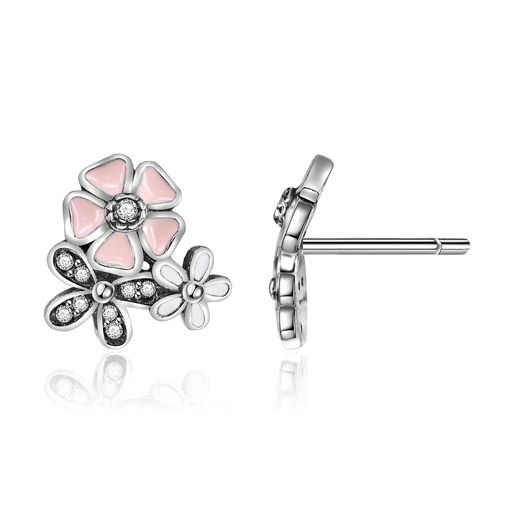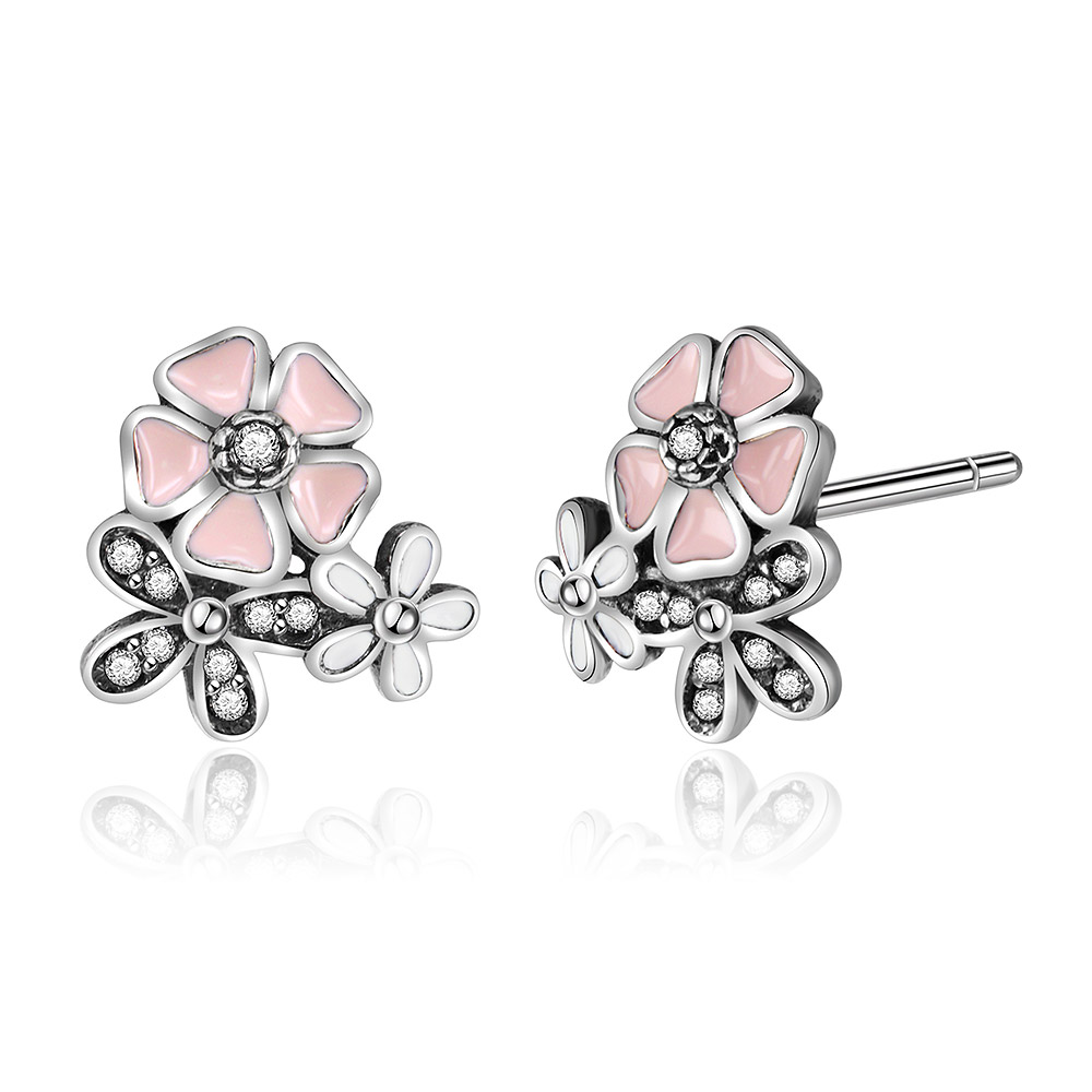 These Beautiful Silver Flower Earrings White & Pink Enamel are crafted from Solid Sterling Silver and silver-plated to make it anti-tarnish and give it a White Gold look. Each piece is set with Cubic Zirconia Stones and designed with Colored Enamel.