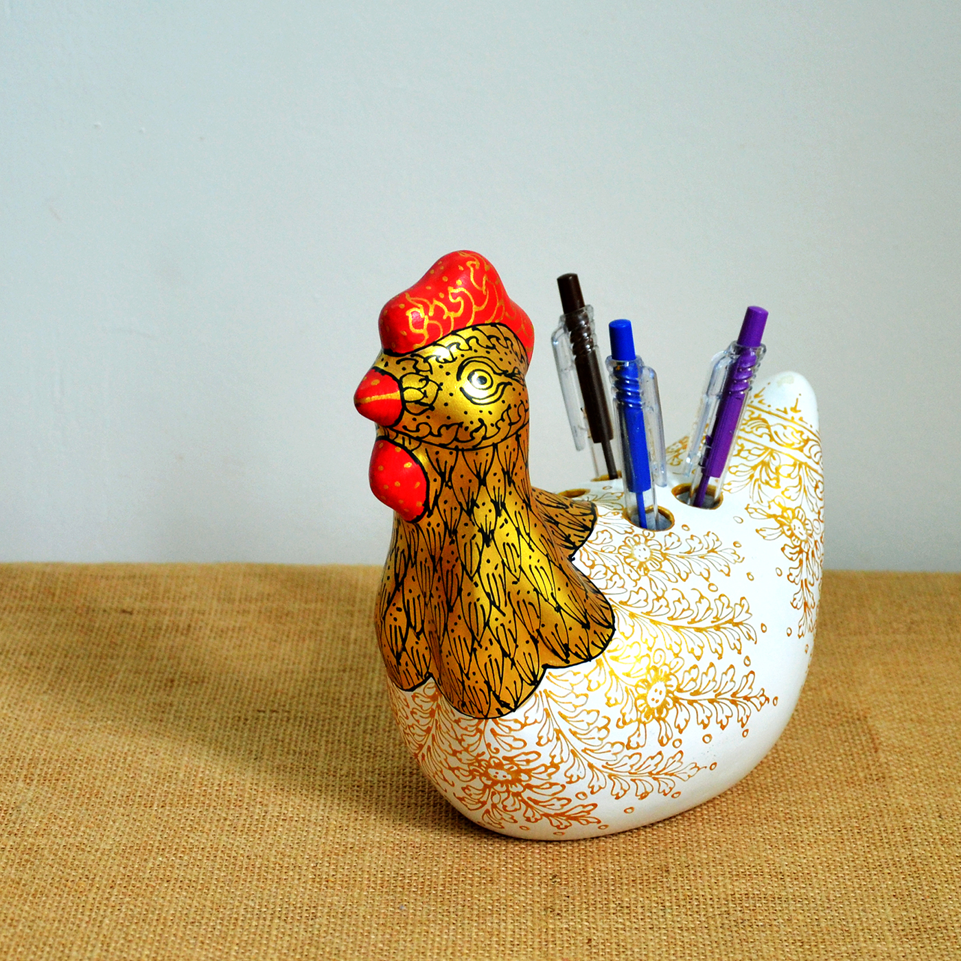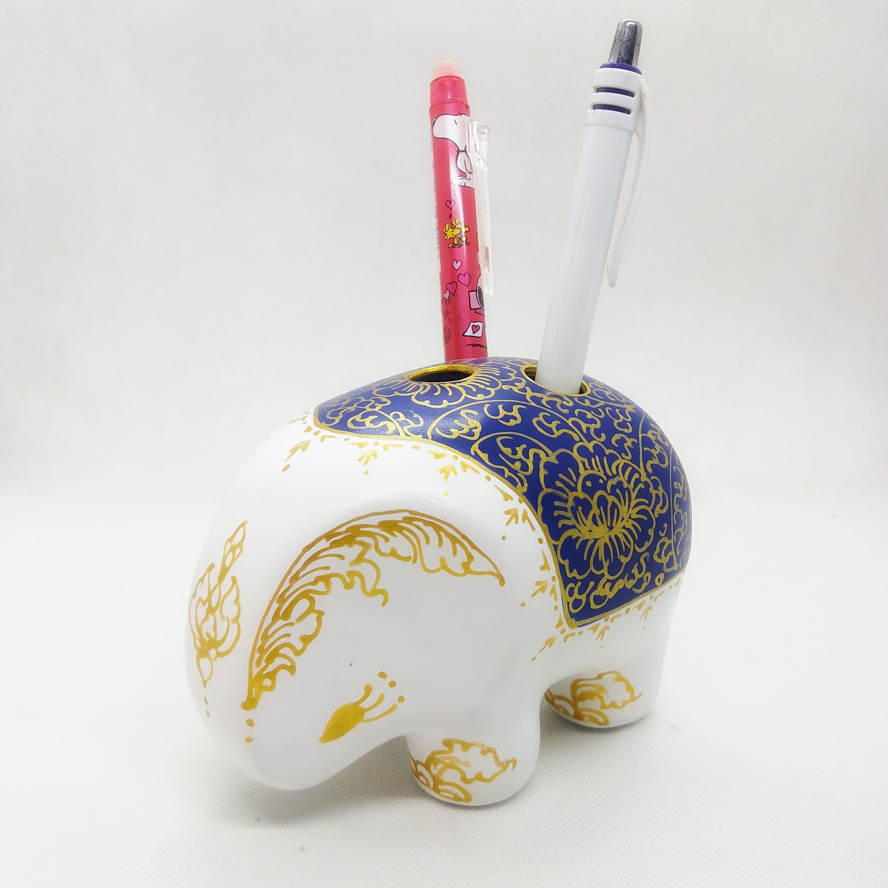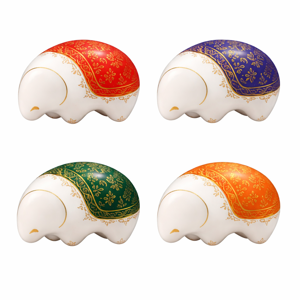 Crafted from recycled paper using traditional papier-mâché techniques, these playful objects transform waste materials into durable, lightweight functional art. Each piece reflects the craftsmanship of Samut Sakhon province—renowned for its intricate gold detailing and traditional Thai Benjarong patterns.