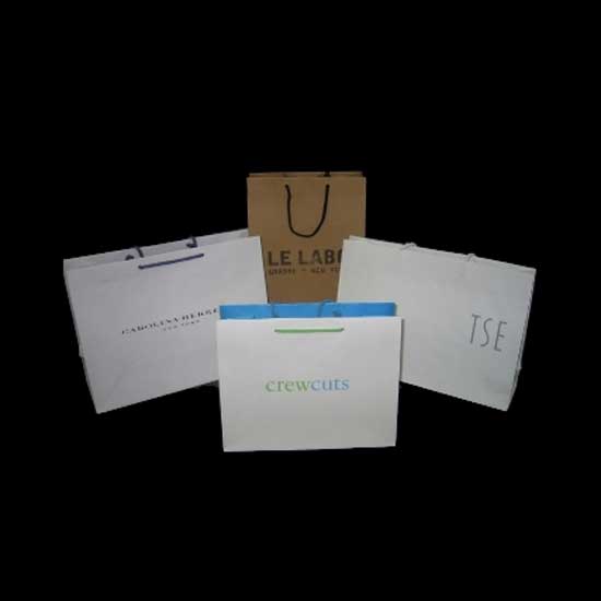 The outlined paper bag comes with a conventional rectangular-shaped design. Its quality paper construction boosts added durability. Customized logos are ideal to print on the surface for promotional use.