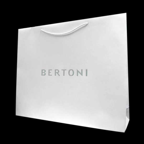 This is a compact paper bag in a simple yet elegant solid white tone. It is fitted with matching white carriage straps on top for added convenience. This paper bag is a reliable option for classy and high-end products.