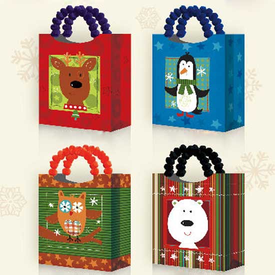 This is a paper bag that is finely accented with colorful animal prints for an appealing look. The unique braided handles allow easy and convenient carrying. This paper bag provides an ideal way to pack your gifts nicely.