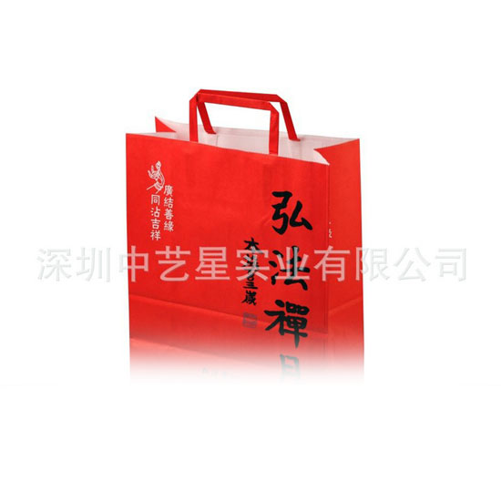 This is a stylish paper bag that is designed in bright red for an eye-catching look. It is made of high-quality paper for durability. This paper bag features two handles on the top for easy carrying.