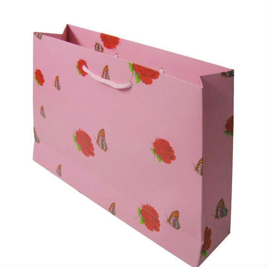 This packaging bag offers ample storage space with a large main compartment. It is adorned with charming flowers and butterflies printed on pink background. The bag is lightweight and tough enough to carry clothes, bottles, boxes, and more.