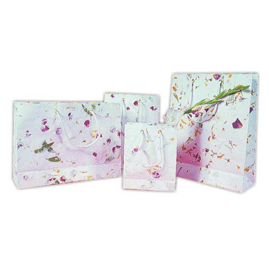 Featured here is a series of printed paper bags in assorted sizes and shapes. They are crafted of high-quality handmade paper with excellent thickness and strength, showcasing a higher capacity than conventional plastic bags. Enhance the appeal of your gifts with these elegantly printed paper bags.