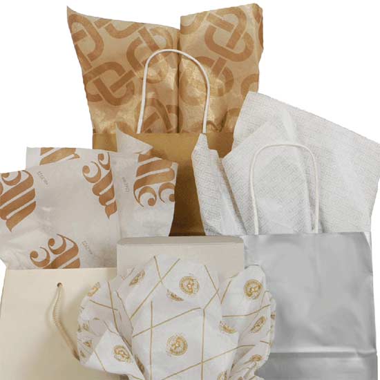 The featured paper bags and paper tissues are perfect the packaging materials for your product. They come with a metallic surface and will enhance the overall impressiveness of your products. Logos can be printed on the bags and tissues.