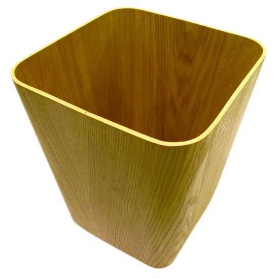 The featured paper bin comes with a square shape with round corners. It flaunts a large capacity. The wood grain on its surface adds a natural touch. The bin makes a practical and decorative item for households.