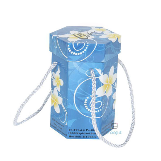 This is a paper box that is accented with colorful prints for an elegant look. It comes with a top cover and two handles for added utility. This paper box is an ideal choice to meet your different packaging purposes.